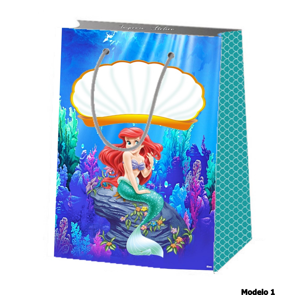 Sacola de Papel Personalizada Ariel Pequena Sereia
